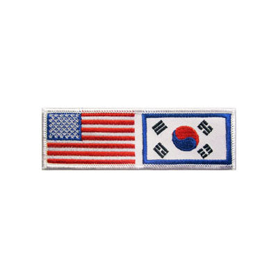 USA & Korean Flag Patch, No Lettering & Silver Border